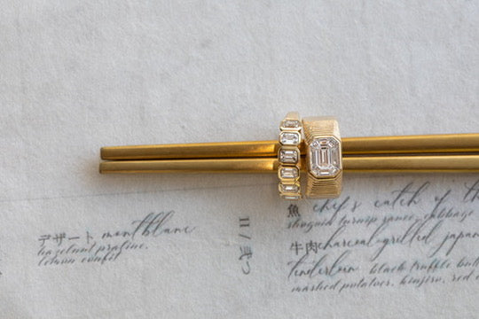 • Sustainably mined 0.84ct Pie illusion-cut emerald cut centre stone